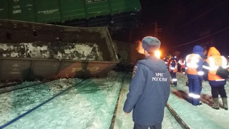 货运列车 货运火车 俄罗斯 脱轨事故 截图