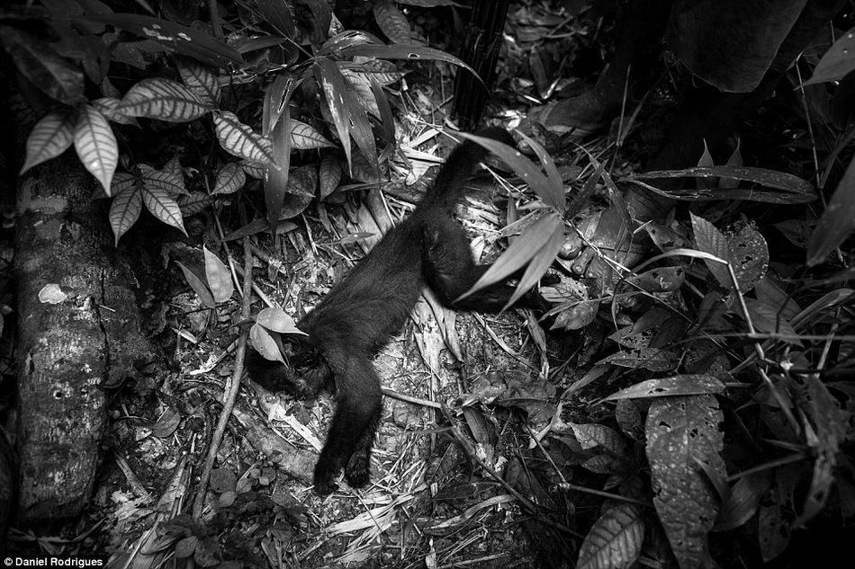 自阿瓦族部落成功狩猎后,一只僧帽猴死在森林里。(网站截图)