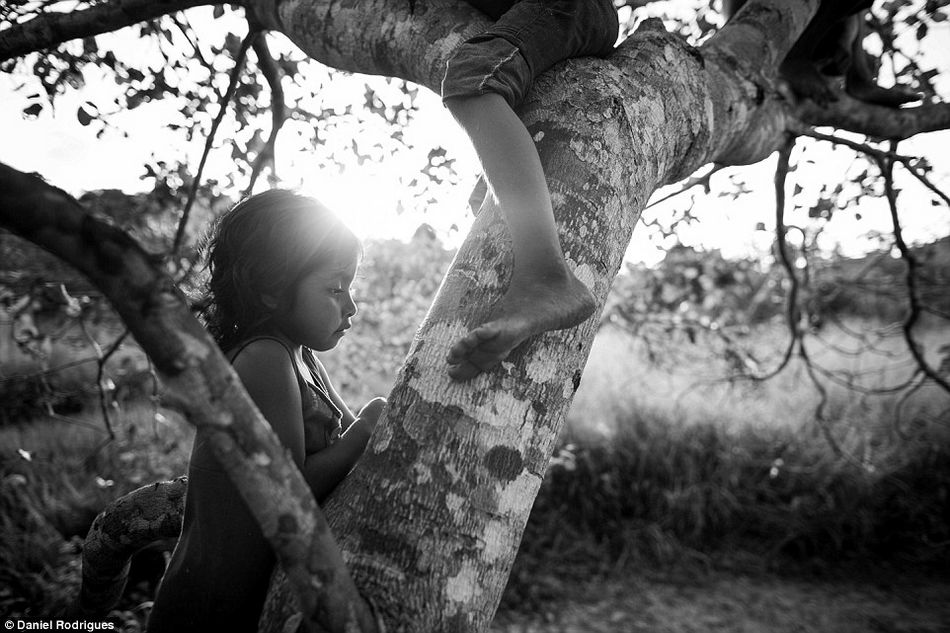 日落时分,小女孩Iwapanya和一个朋友在Tiracambu村的一棵树上嬉戏。(网站截图)