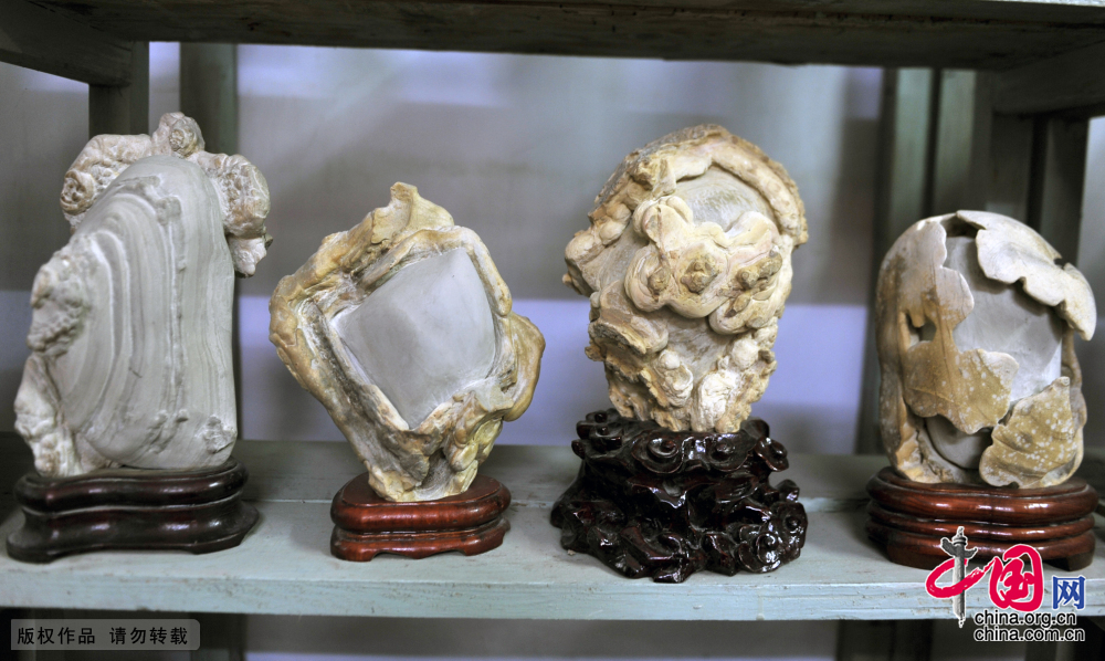游世贵收藏的部分中国云锦石。(2月2日摄)中国网图片库 谢顺/摄