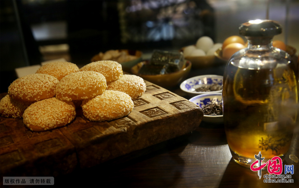 春节期间,徽州的各家各户的饭桌上都会端上“麻球”、“米酒”、“鸡蛋”丰盛食品,欢度佳节。中国网图片库 吴孙民/摄
