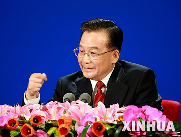 2007年3月16日,温家宝在总理记者会上说:“政府的一切权力都是人民赋予的,一切属于人民,一切为了人民,一切依靠人民,一切归功于人民。”(图片来源:新华网)