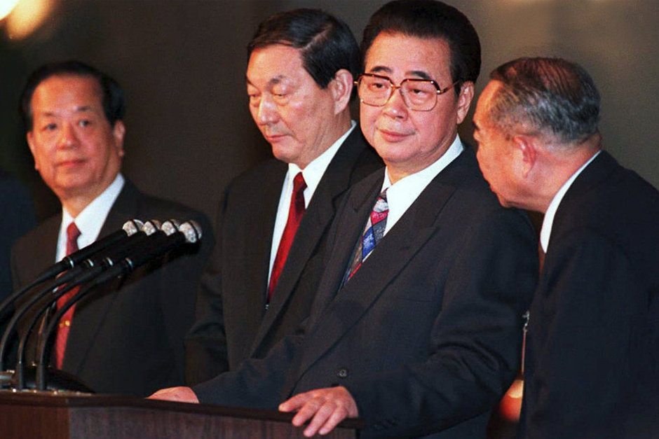 1995年3月18日,国务院总理李鹏和副总理朱镕基、钱其琛等会见采访“两会”的中外记者,并接受采访。李鹏任总理的两届任期内,共在两会记者招待会上回答了124个各类问题,经济问题20个,占16%。(资料图)(限于现有网络资源,图片资料收集不全)