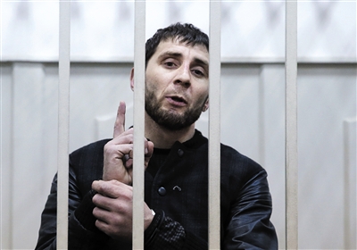 当地时间3月8日,涉嫌杀害反对派领袖涅姆佐夫的嫌疑人达达耶夫出席庭审。