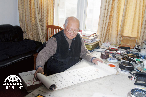 林散之长子、著名书画家林筱之先生在欣赏林散之第一草书《中日友谊诗》