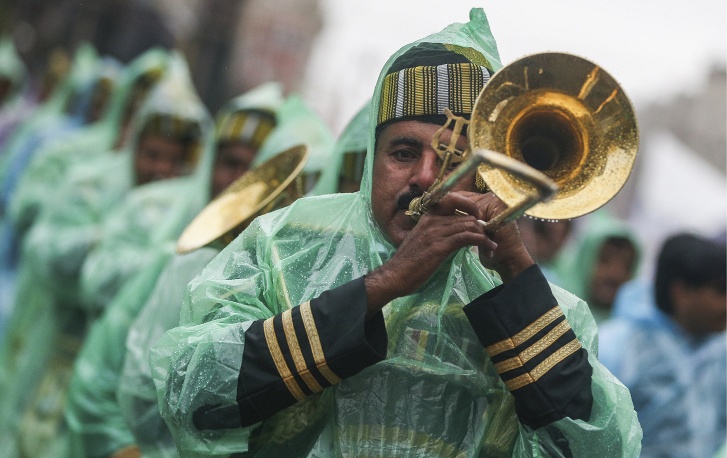 当地时间9月5日,前来参加莫斯科国际军乐节的中国、巴基斯坦、白俄罗斯、哈萨克斯坦、墨西哥等国军乐队不惧大雨,为莫斯科城庆倾情献艺,并与市民亲切互动。(网页截图)