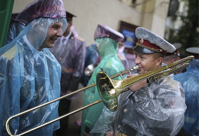 中国军乐队大雨中为莫斯科城庆倾情献艺