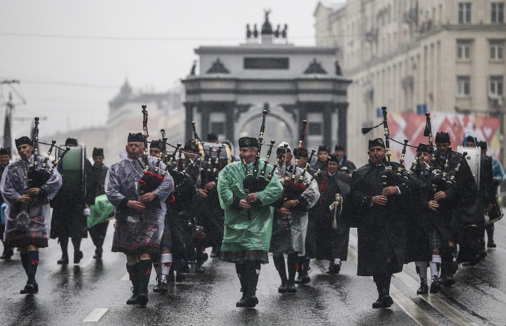中国军乐队大雨中为莫斯科城庆倾情献艺