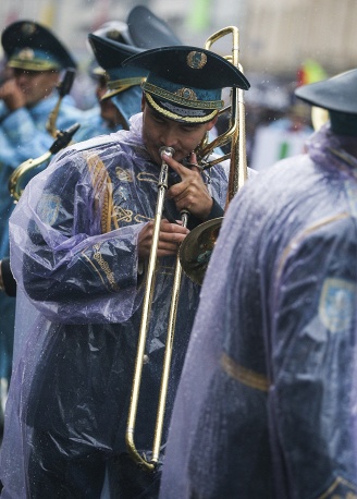 中国军乐队大雨中为莫斯科城庆倾情献艺