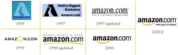 亚马逊成立于1995年,最初的公司徽标非常简陋,蓝色的背景上印了一个大大的A字;1997 年徽标上就自豪地加上了“世界上最大的书店” 这条宣传字样;1998 年公司再度两次更改徽标;2000 年亚马逊的徽标最终定性。