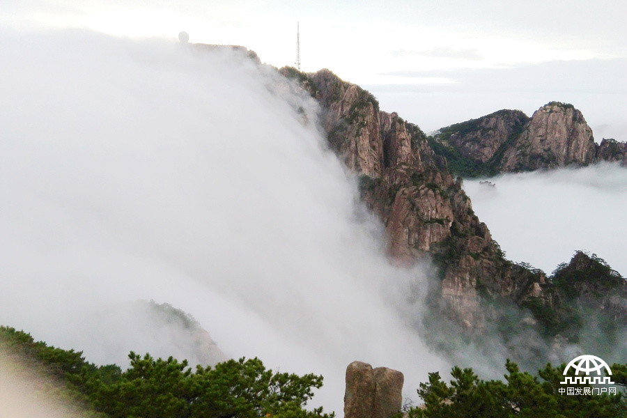 中国网/中国发展门户网讯(方立华 叶永清)近日,雨过初晴的安徽黄山风景区出现了今秋以来最美丽、最壮观的云海奇观,风起云涌之时景区内座座山峰时隐时现,宛如电影《阿凡达》里的浮悬 “哈利路亚山”,令游客叹为观止。