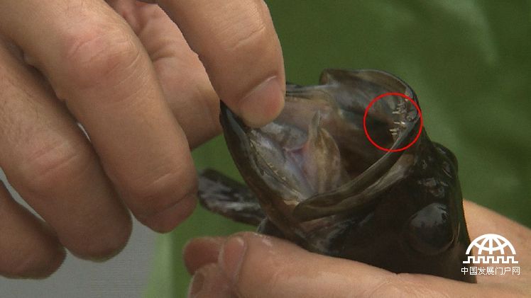 把这一刻静止然后放大,石斑鱼细尖的牙齿像针一样清晰可见,极具杀伤力。记者在抓鱼时也被它不小心刮伤。