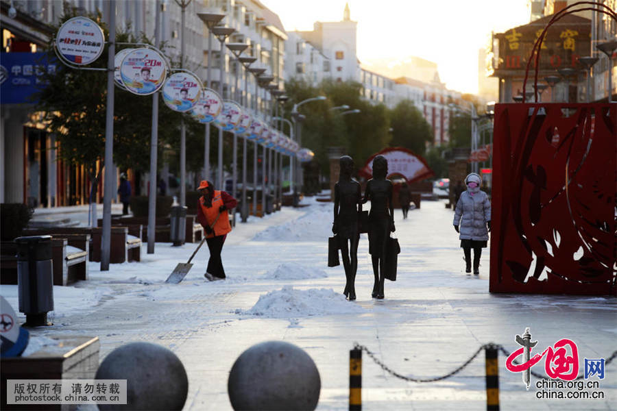 2015年10月24日,黑龙江省黑河,由于气温骤降,黑河市于24日凌晨突降小雪,气温骤降至零下8度,为了给市民一个方便、美好的出行生活环境,黑河市数十名50至70岁的环卫工人在凌晨三点多自发起床前往自己负责的片段及时清扫积雪。记者于当日5点多起床采访,采访中看到很多近7旬的大爷大娘们在咧咧寒风中卖力地清扫积雪,他们讲由于他们很多人都是退休职工或子女事业有成,他们现实生活中并不缺乏钱财,他们爱劳动的目的除了为了晚年身体更健康之外,就是为了给全体市民一个良好的生活环境。早晨近八点左右时,一位位老人才迈着疲惫的步伐去黑河市政府关爱他们的早餐厅就餐,望着他们远去的背影,身为“80后”的记者情不自禁的感慨:黑河市连续多年被国家评为“卫生城市”,也许他们就是这个城市最美的“美容师”!