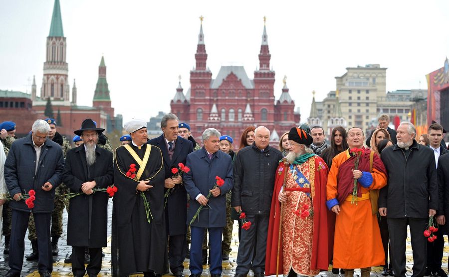 普京“民族团结日”与爱国青年在红场自拍合影