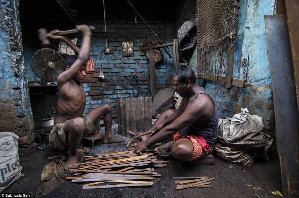 男孩和他的父亲在店内中打铁。(网站截图)