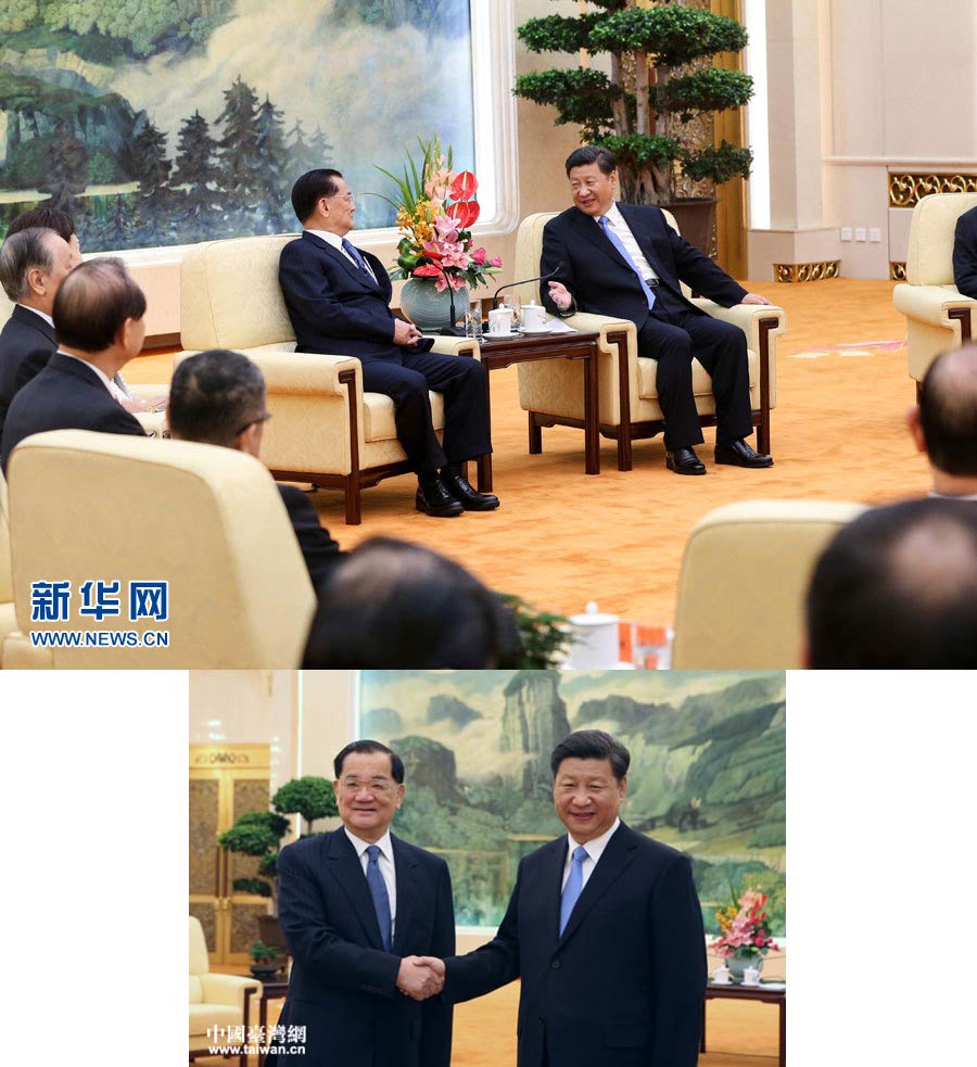 (上图)2015年9月1日,中共中央总书记习近平在北京人民大会堂会见前来参加中国人民抗日战争暨世界反法西斯战争胜利70周年纪念活动的连战等台湾各界代表人士。新华社记者马占成 摄(下图)中共中央总书记习近平2015年9月1日上午在人民大会堂会见出席抗战胜利70周年纪念活动的连战等台湾各界代表人士。中国台湾网记者扶海涛 摄