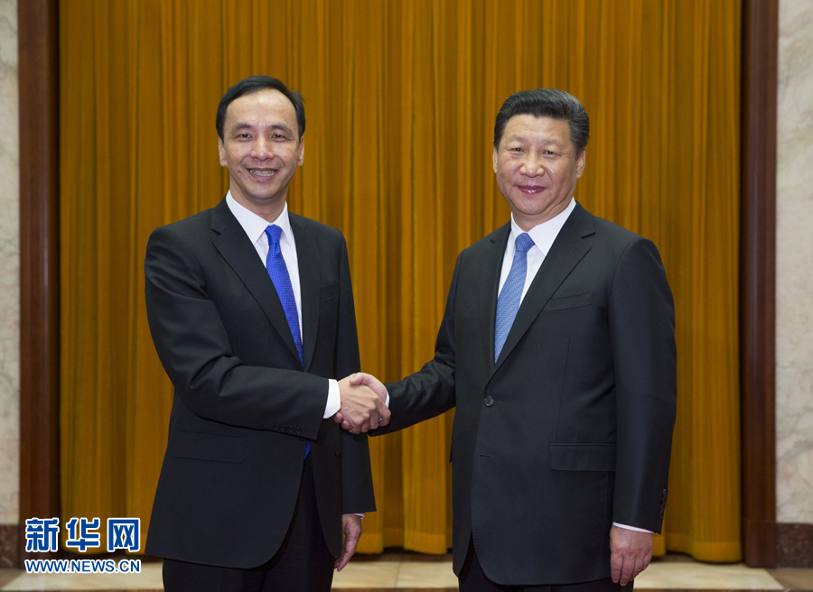 2015年5月4日,中共中央总书记习近平在北京人民大会堂会见朱立伦主席率领的中国国民党大陆访问团。新华社记者 兰红光 摄