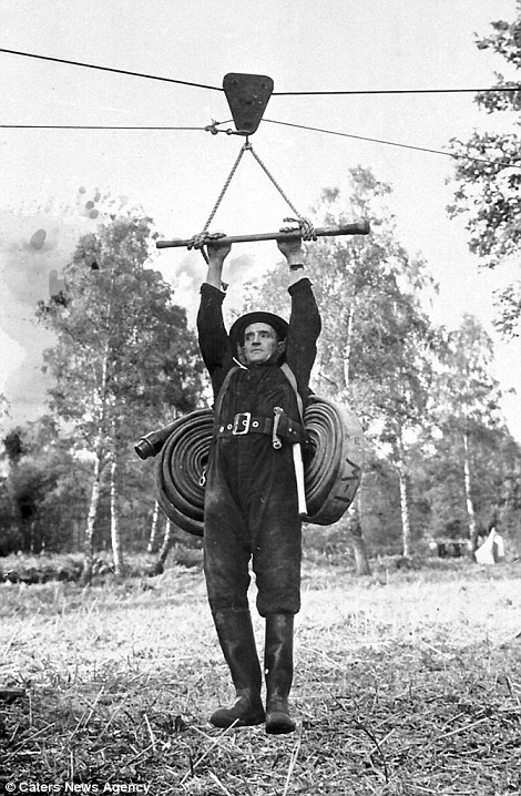 黑白照片再现二战期间伦敦消防队灭火现场