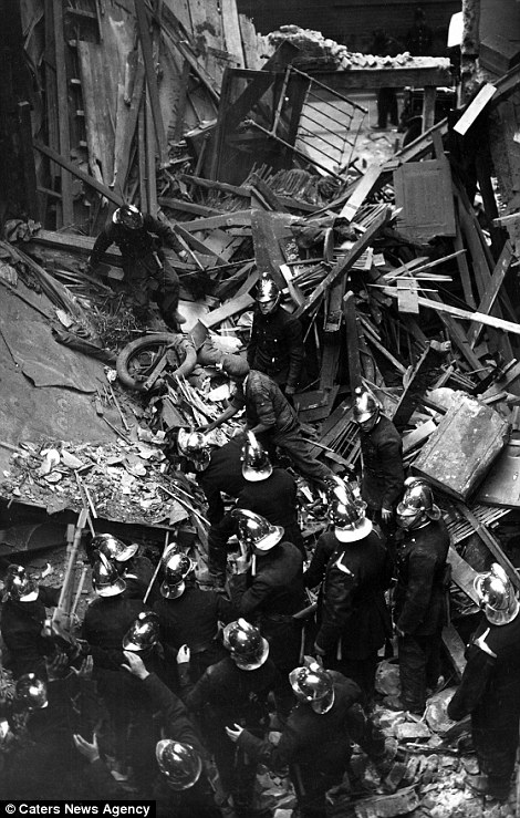 黑白照片再现二战期间伦敦消防队灭火现场