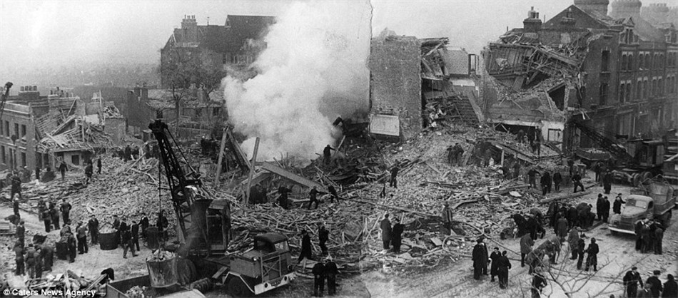 黑白照片再现二战期间伦敦消防队灭火现场