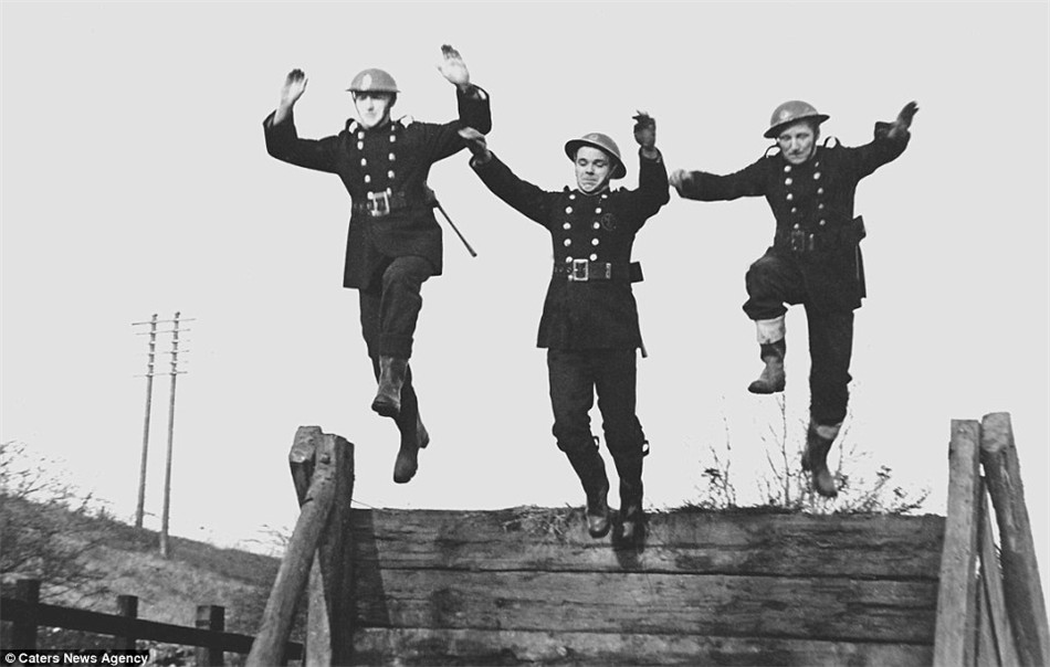 黑白照片再现二战期间伦敦消防队灭火现场。(网站截图)