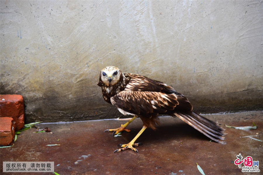 2015年11月18日上午,一名不愿意透露姓名的男子将一只大鸟送到郑州市林业局野生动物救护站,经过救护站站长董朝伟上网查询,该鸟为国家二级保护动物---白头鹞,濒危动物,非常罕见。 中国网图库 李四信/摄