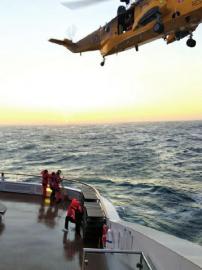 最早来救援的是黄色的海上救援直升机,他不能确定是阿根廷的还是英国的。尽管风很大,但直升机还是成功悬停在船头甲板上方,索降下来救援人员。但是,直升飞机一次只能搭载7到8人,而等待救援转移的有200多人。