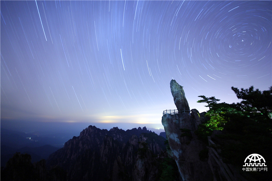 中国网/中国发展门户网讯(叶永清 方立华)11月25日,笔者在黄山风景区贡阳山观赏到云海中飞来石美景。当天,波浪起伏的云海在飞来石周围翻滚,如潮水般地拍打着险峰峭壁上。单独耸立飞来石,就象一艘帆船一样在波涛海面中航行,美得让人窒息。