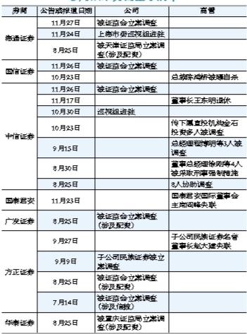 8月下旬华泰证券、海通证券、方正证券和广发证券等4家券商也被立案调查,调查均来自地方稽查机构。