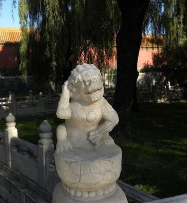 故宫有座断虹桥,虽处在非开放区,但却因桥上萌态十足的石狮子声名远播。其中一只“护裆萌狮”其照片去年更为网友热传。只见它一爪摸着后脑勺,一爪护在裆部,嘴巴微张,虽然经过日久风吹,多少有些面目模糊,但抓耳挠腮、欲说还休的“憋屈”样依然萌态十足。