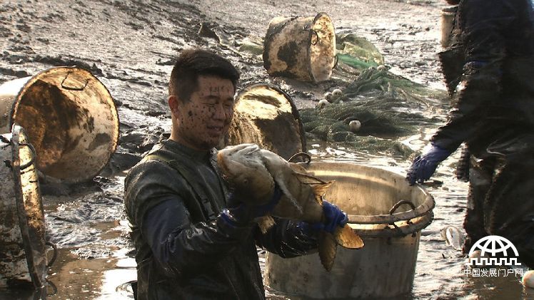 记者:白(鲢)鱼太厉害了,他一拉网,(白鲢鱼)撞我的腿。这白(鲢)鱼平均都多大?这么大!