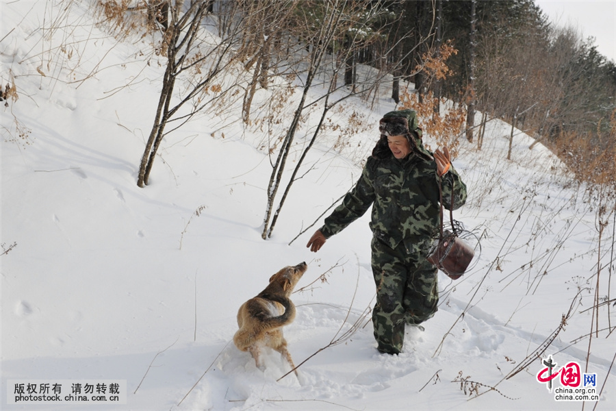 1月19日他的大黄陪着他,撒欢儿在树林里跑来跑去 中国网图片库 王薇/摄