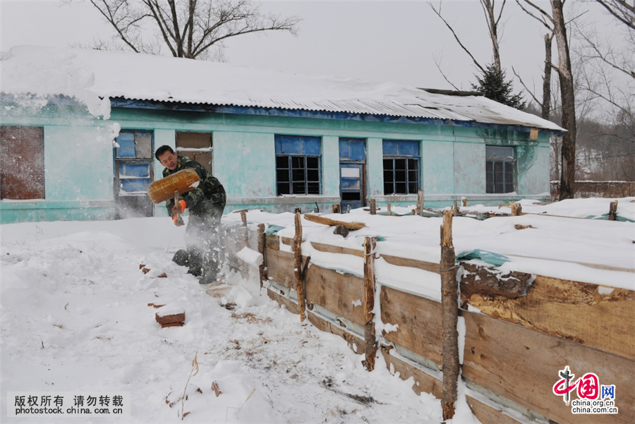 1月19日,石文广利用业余时间,清理大雪覆盖的蜂箱 中国网图片库 王薇/摄
