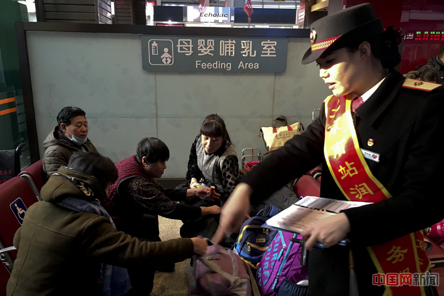 1月24日,春运首日,北京南站工作人员为旅客提供帮助。中国网记者 郭永国 摄