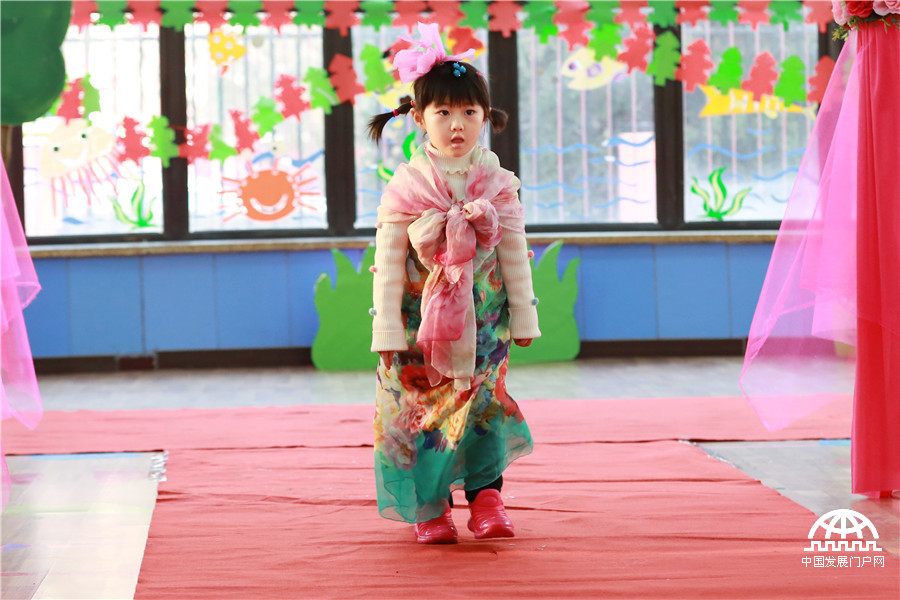 中国网/中国发展门户网讯 (记者王东海)1月27日,伴随着强劲的音乐声,一场别开生面的“时装”秀正在北京金色摇篮慧忠里幼儿园多功能厅举行,T型台上是“嫩模”的专心表演,台下则是观众笑声和掌声不断。