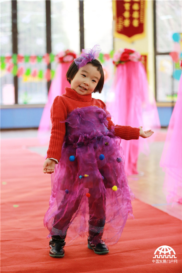 中国网/中国发展门户网讯 (记者王东海)1月27日,伴随着强劲的音乐声,一场别开生面的“时装”秀正在北京金色摇篮慧忠里幼儿园多功能厅举行,T型台上是“嫩模”的专心表演,台下则是观众笑声和掌声不断。