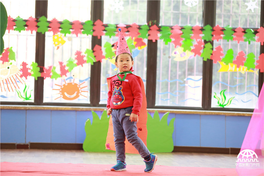中国网/中国发展门户网讯 (记者王东海)1月27日,伴随着强劲的音乐声,一场别开生面的“时装”秀正在北京金色摇篮慧忠里幼儿园多功能厅举行,T型台上是“嫩模”的专心表演,台下则是观众笑声和掌声不断。