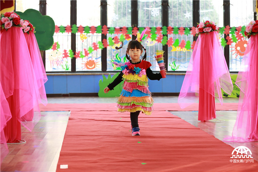 中国网/中国发展门户网讯 (记者王东海)1月27日,伴随着强劲的音乐声,一场别开生面的“时装”秀正在北京金色摇篮慧忠里幼儿园多功能厅举行,T型台上是“嫩模”的专心表演,台下则是观众笑声和掌声不断。