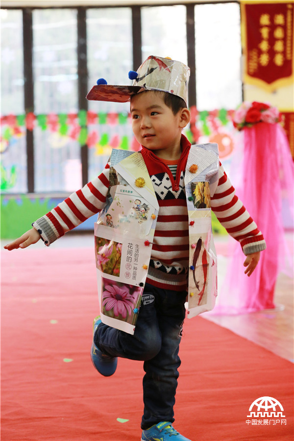 中国网/中国发展门户网讯 (记者王东海)1月27日,伴随着强劲的音乐声,一场别开生面的“时装”秀正在北京金色摇篮慧忠里幼儿园多功能厅举行,T型台上是“嫩模”的专心表演,台下则是观众笑声和掌声不断。