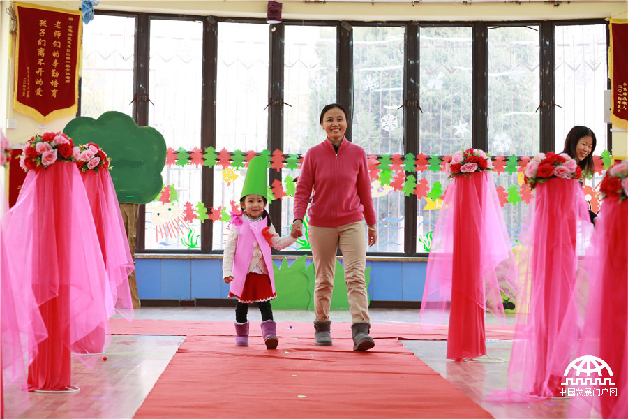 中国网/中国发展门户网讯 (记者王东海)1月27日,伴随着强劲的音乐声,一场别开生面的“时装”秀正在北京金色摇篮慧忠里幼儿园多功能厅举行,T型台上是“嫩模”的专心表演,台下则是观众笑声和掌声不断。