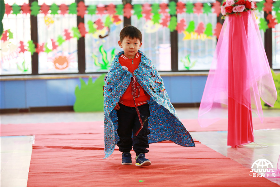 中国网/中国发展门户网讯 (记者王东海)1月27日,伴随着强劲的音乐声,一场别开生面的“时装”秀正在北京金色摇篮慧忠里幼儿园多功能厅举行,T型台上是“嫩模”的专心表演,台下则是观众笑声和掌声不断。