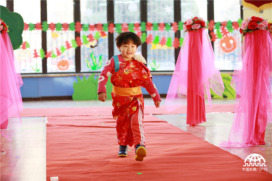 中国网/中国发展门户网讯 (记者王东海)1月27日,伴随着强劲的音乐声,一场别开生面的“时装”秀正在北京金色摇篮慧忠里幼儿园多功能厅举行,T型台上是“嫩模”的专心表演,台下则是观众笑声和掌声不断。