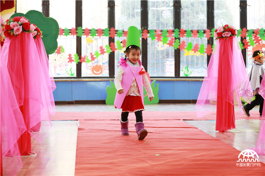 中国网/中国发展门户网讯 (记者王东海)1月27日,伴随着强劲的音乐声,一场别开生面的“时装”秀正在北京金色摇篮慧忠里幼儿园多功能厅举行,T型台上是“嫩模”的专心表演,台下则是观众笑声和掌声不断。