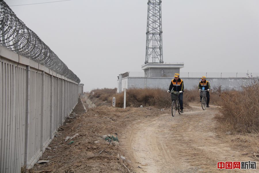 守桥人骑着自行车巡视检查大桥周边路外安全。
