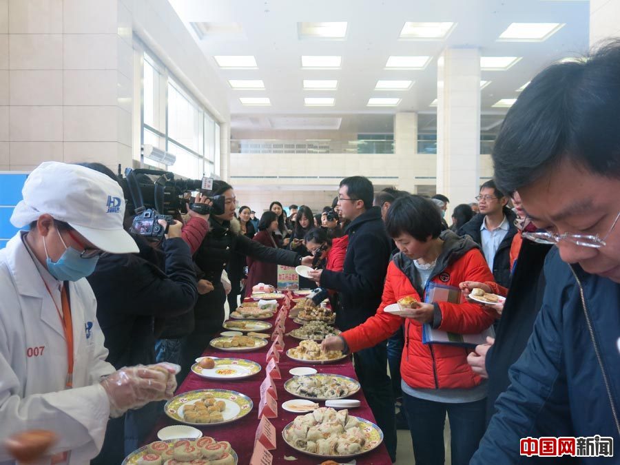 2015年2月25日,中国农业科学院主办的马铃薯产业开发高层研讨暨成果发布会在北京举行。图为与会者在现场展示区品尝马铃薯主食。中国网张艳玲 摄