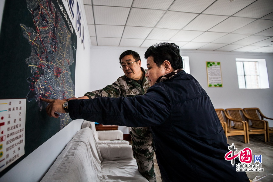每一个防火点都在地图上被标示,孙建博每次都要询问每一个点的情况。中国网记者 郑亮摄影