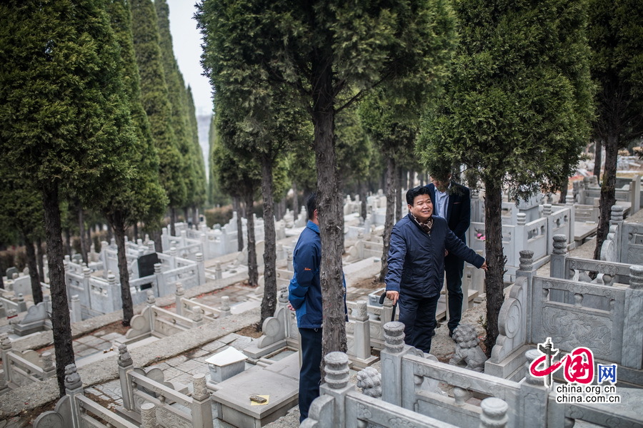 孙建博在检查残疾职工工作的碑林。中国网记者 郑亮摄影