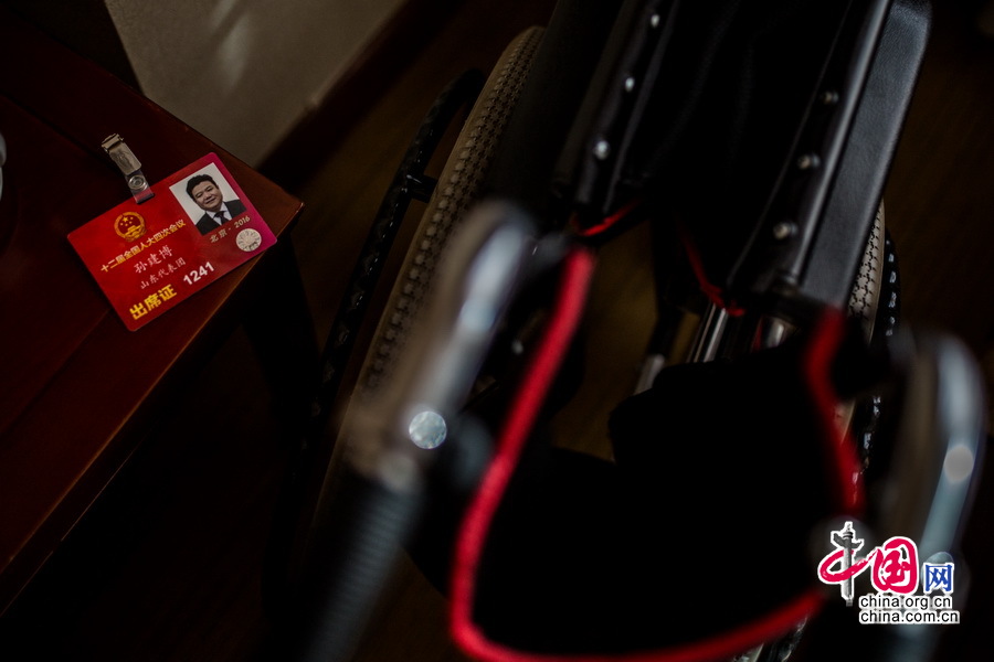轮椅上的“谏言先锋”,尽责职守的全国人大代表孙建博。中国网记者郑亮摄影