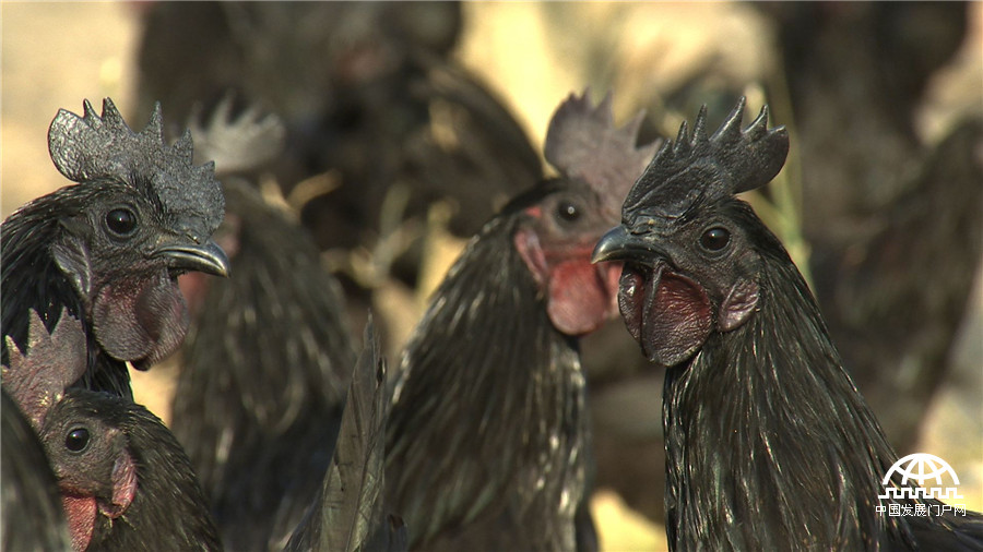 陈勇:这个鸡好难抓这个鸡。这个鸡一个最大的特点就是全黑。我们这个鸡冠是黑的。它的皮啊,肉全部是黑的。这个毛全是黑的。
