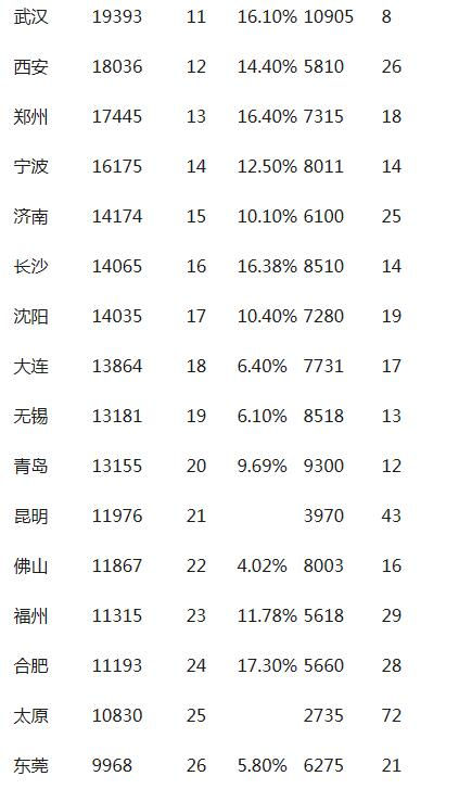 类似的“错位”还有,经济总量第26位的西安,资金总量高居第12位,经济总量第18的郑州,资金总量高居第13。